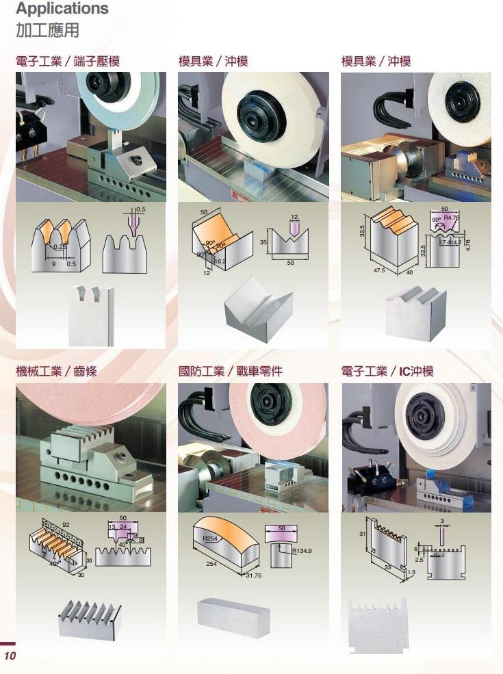 成型研磨被廣泛的應用在切削刀具、模具零件及模板等各式加工。