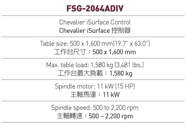 Chevalier全新設(shè)計的FSG-2048和2064ADIV,加入我們ADIV 數(shù)控平面磨床系列機(jī)種,擁有多項(xiàng)優(yōu)良設(shè)計: