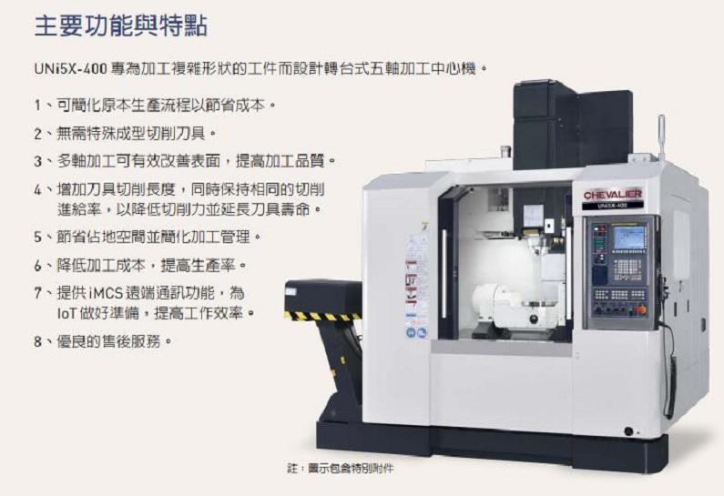 UNi5X-400 專(zhuān)為加工複雜形狀的工件而設(shè)計(jì)轉(zhuǎn)臺(tái)式五軸加工中心機(jī)。